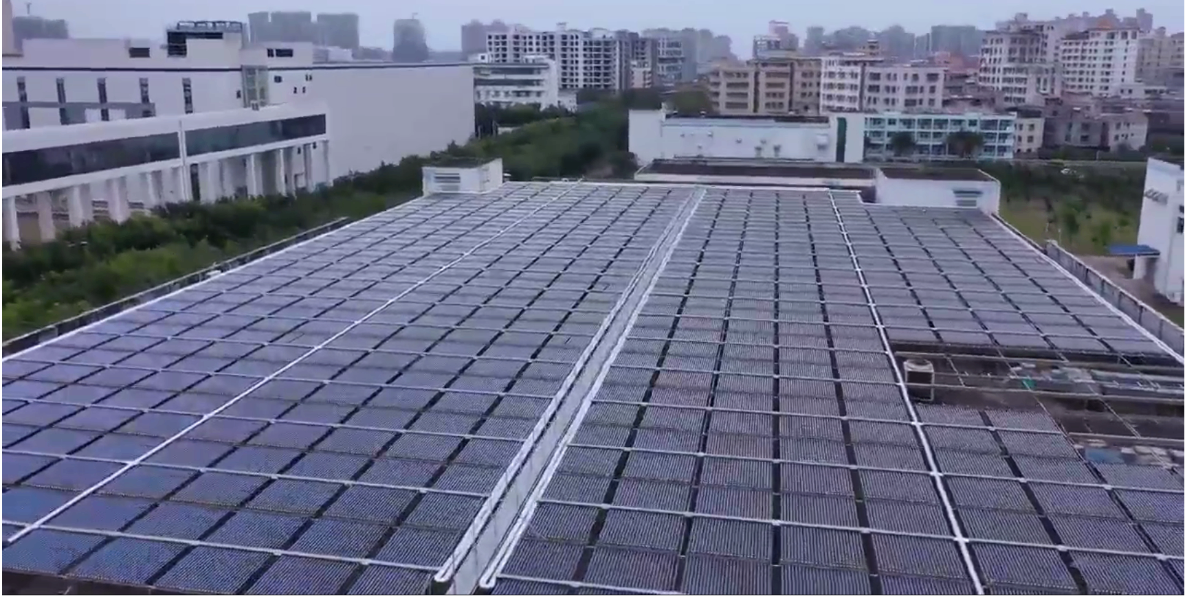 海南通用康力制药有限公司的青霉素车间楼顶和锅炉房安装工业级太阳能蒸汽供应全套设备。主要设备为燃气蒸汽发生器、蒸汽储存罐、工业级太阳能蒸汽集热器阵列。